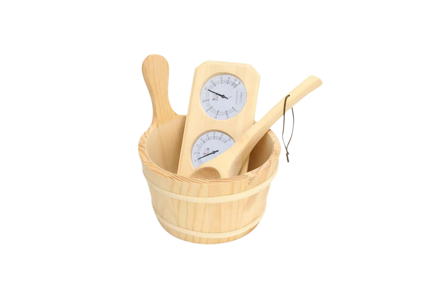 Each sauna is accompanied by essential accessories, including a wooden bucket and ladle for authentic sauna rituals. Additionally, an included thermometer enhances your sauna experience with convenience and authenticity